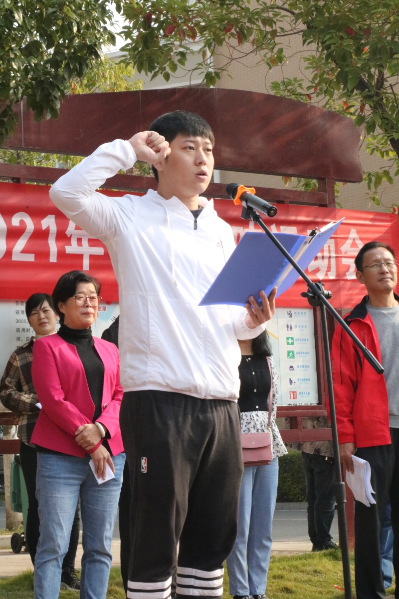 教务科徐项科长宣布运动会比赛开始,同学们以饱满的热情与高昂的情绪拥抱这场一年一度的体育盛会。
