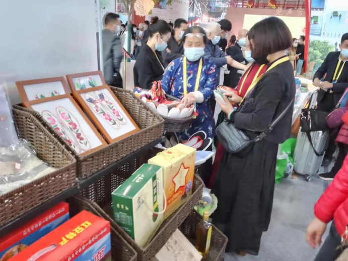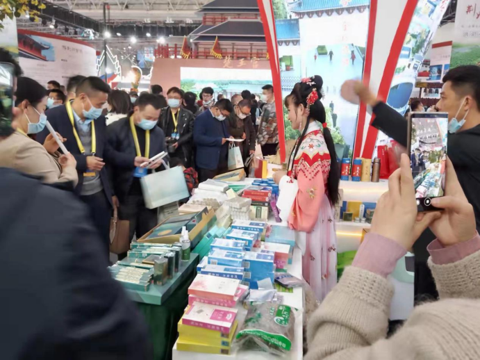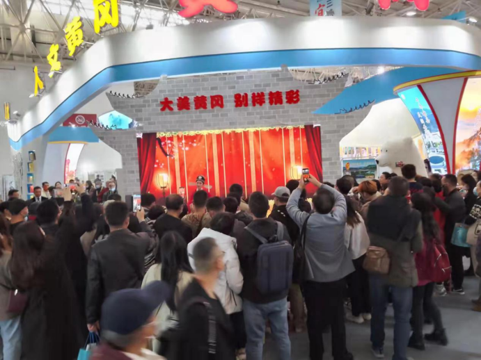 网红打卡点、地标优品、文创产品、非遗手工、宣传资料吸引游客,馆内人头攒动、络绎不绝。黄梅挑花首日现场销售额超10万。黄冈馆现场销售20余万,签约订单20余万,更有多家企业与省内外经销商达成合作意向。