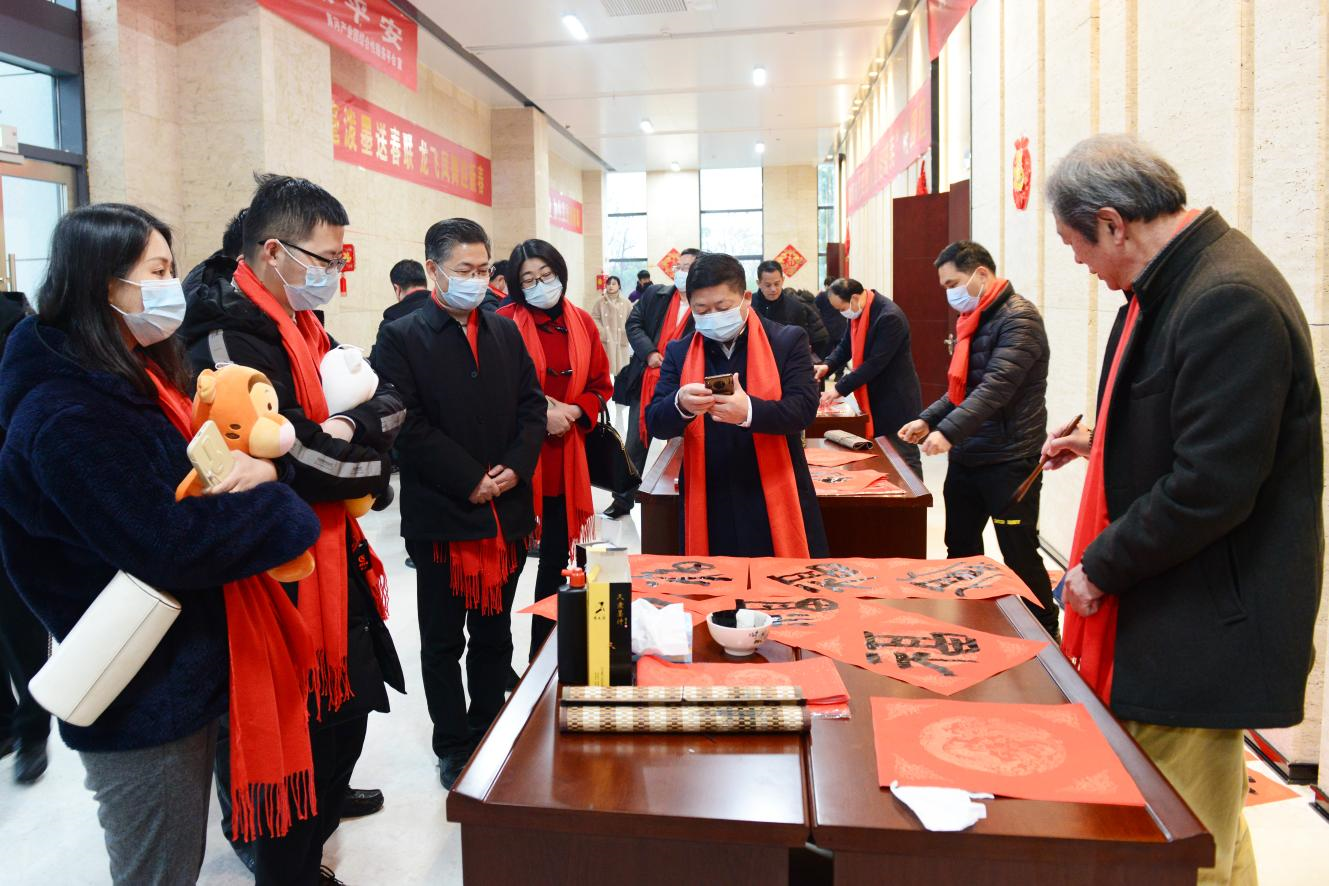 本次活动还组织了秦龙志、高岚、陈忠文、杨文斌、柯希仑、江光源、张卫军、艾朝阳、董慈航等书法家现场挥毫泼墨写春联、送祝福。书法家们将心中美好的祝愿、浓浓的节日喜气送给园区职工。园区职工兴高采烈、欢欢喜喜地围在书法家桌前,挑选自己喜爱的春联,满脸洋溢着节日喜庆。整场活动气氛祥和热烈,透着浓浓的年味和满满的祝福。