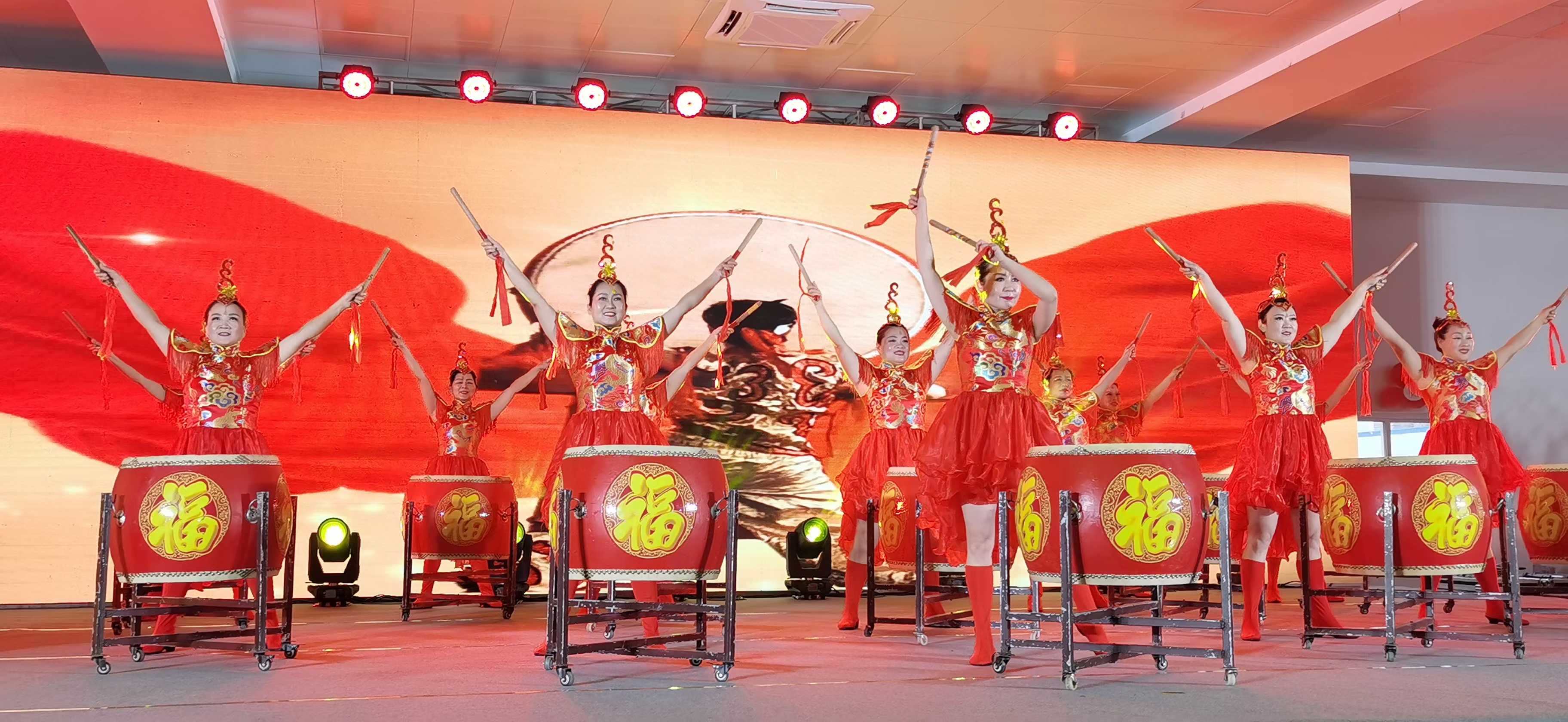 活动在伊利公司员工食堂隆重举行。歌舞《鼓舞新时代》热烈欢快,激情昂扬;全国青歌赛原生态唱法金奖获得者吴娟老师演唱的《迎客歌》《山路十八弯》热情洋溢,情深谊长。国家一级演员谢思琴、国家二级演员王晓华演绎的黄梅戏《夫妻观灯》欢快喜庆,恢谐风趣;广西艺术学院通俗唱法研究生涂成超一曲《敕勒歌》饱含深情,优美动听。武汉音乐学院声乐系毕业生周颖独唱《春天的芭蕾》表现了对春天的热切期盼;中央音乐学院声歌系学生陈汝杰领唱,全体演员合唱的《我爱你中国》表达了对祖国无限的热爱。知名歌手祁红兵、王庆华等表演的歌舞《十绣黄州》歌颂了黄州美景和人们幸福美好的生活,著名湖北大鼓表演艺术家张明智弟子徐欢表演的湖北大鼓《做好工业强市产业兴市大文章》展现了黄冈人民昂首阔步谱写新篇的豪迈和斗志。