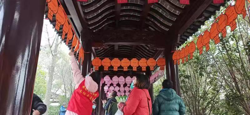 猜灯谜历来是元宵节传统节目,活动现场张灯结彩,400条灯谜悬挂在红色的绳子上迎风飘扬,灯谜内容贴近生活,富有时代特点,集知识性和趣味性于一体。既有常见的字谜、成语谜,也有地名谜、物品谜,还有与时尚接轨的人名谜等等,将传统与现代完美融合,让中华优秀传统文化步入生活,竞猜的市民们踊跃参与,一派火热的闹元宵盛景。