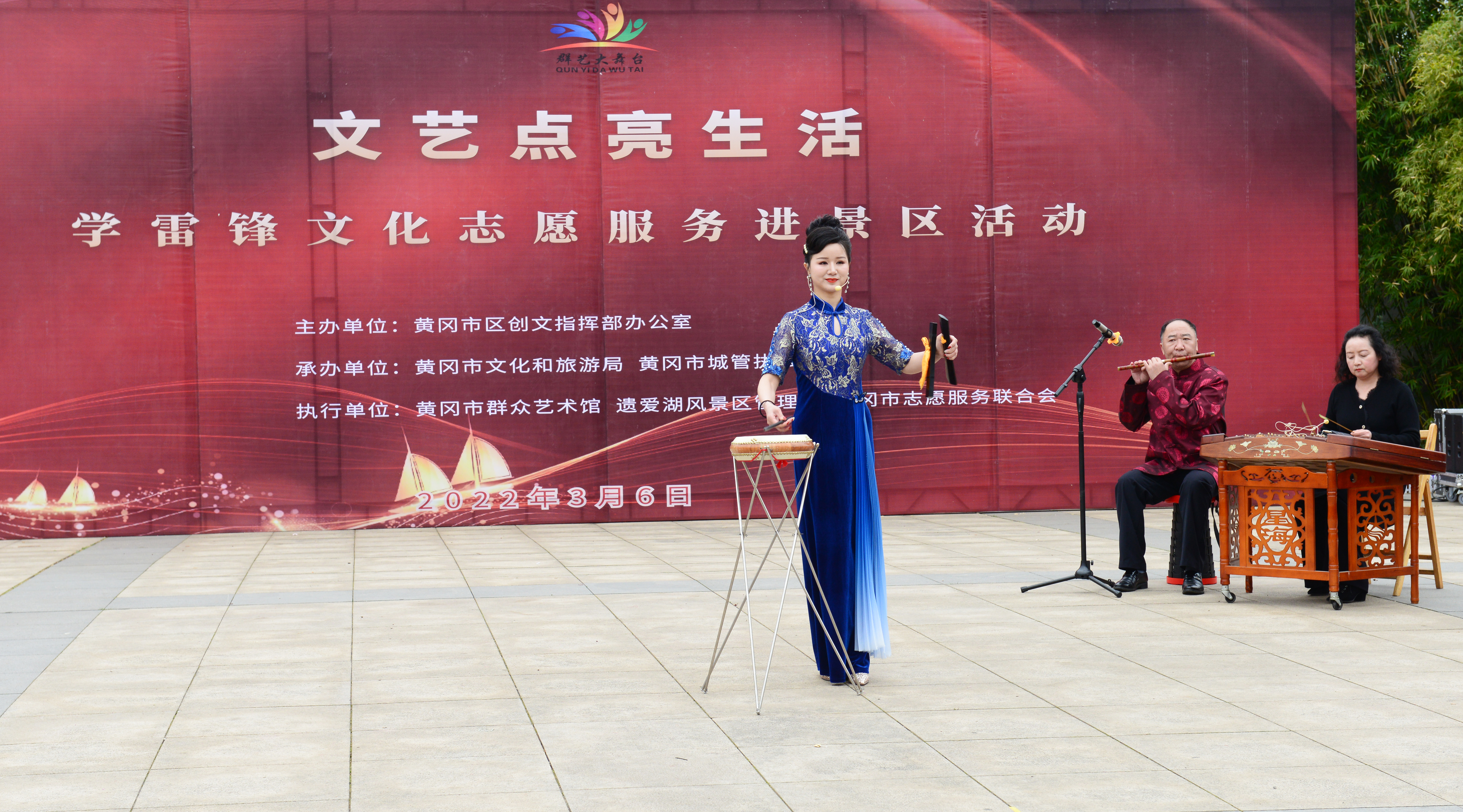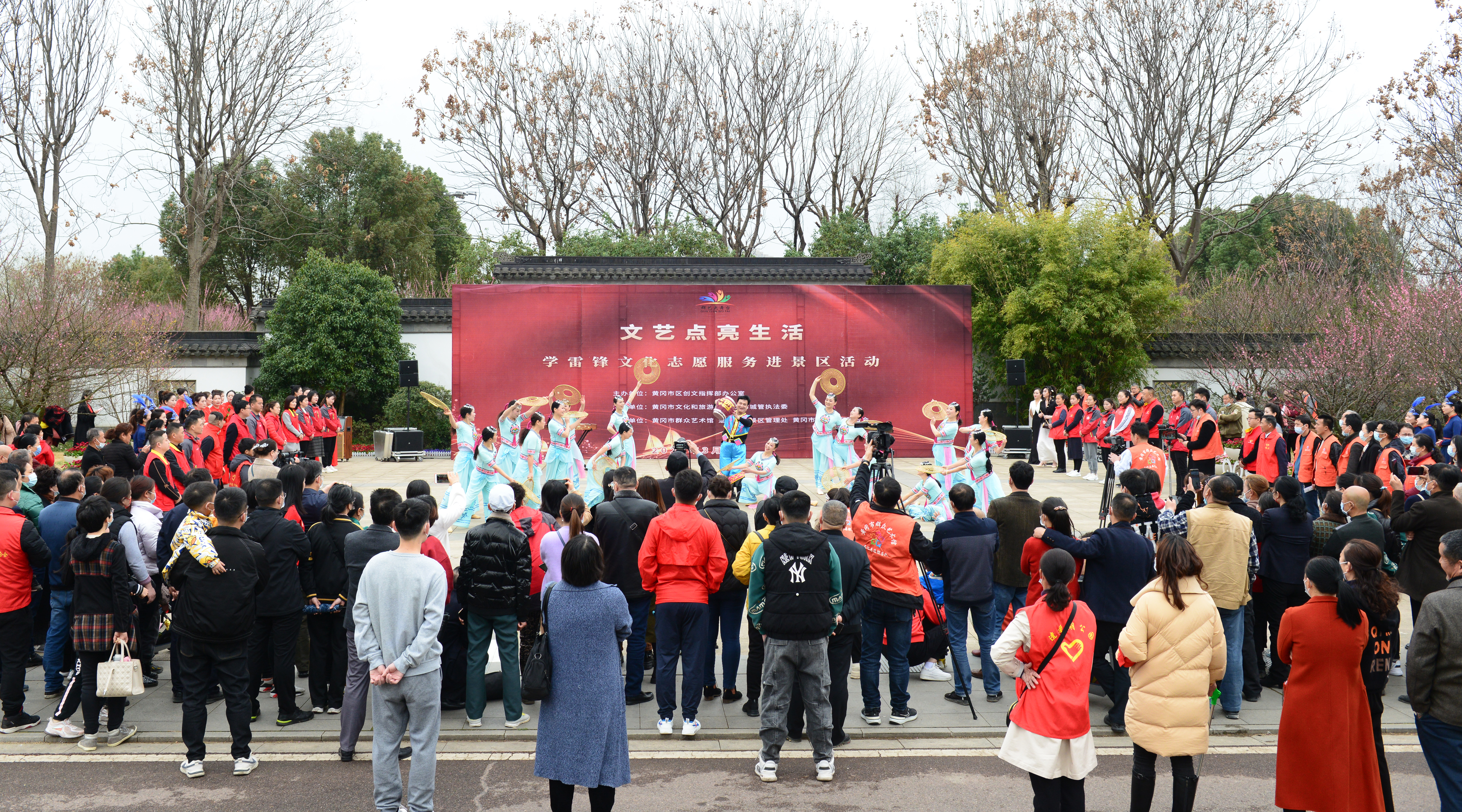 为弘扬雷锋精神,深入开展文化志愿服务活动,助力全国文明城市创建,丰富遗爱湖公园群众文化活动,由黄冈市区创文指挥部办公室主办,黄冈市文化和旅游局、黄冈市城管执法委承办,黄冈市群众艺术馆、遗爱湖风景区管理处、黄冈市志愿服务联合会执行的“文艺点亮生活”学雷锋文化志愿服务进景区活动在遗爱湖公园成功举行,市委常委、市委宣传部部长李初敏等领导出席观看,现场观看人数达3000多人。