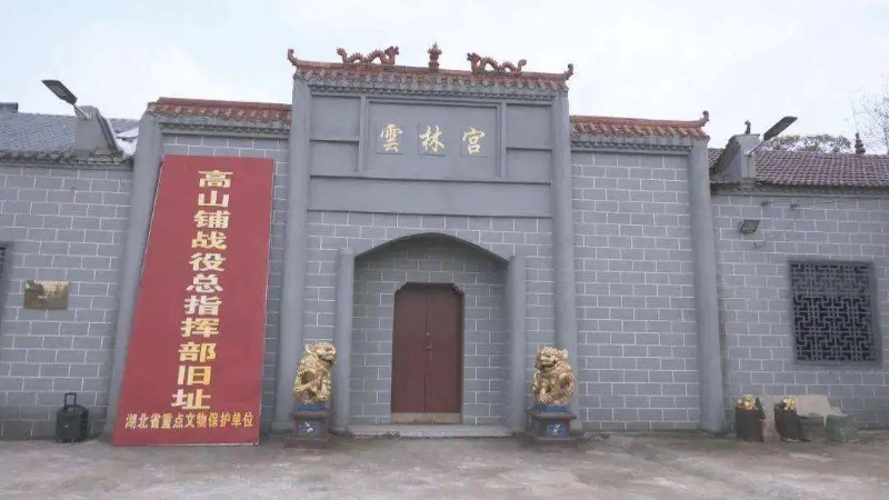 高山铺战役总指挥部旧址位于蕲春县刘河镇。1947年10月,晋冀鲁豫野战军等发起高山铺战役,总指挥部设于此。该旧址还是1930年蕲春县临时苏维埃政府所在地,旧址原为云林宫,始建于1777年,现一进二重,面阔三间,建筑面积约300平方米,硬山顶,砖木结构。该旧址对中国军事史和解放战争具有重要的历史价值。为湖北省文物保护单位、红色旅游经典景区。