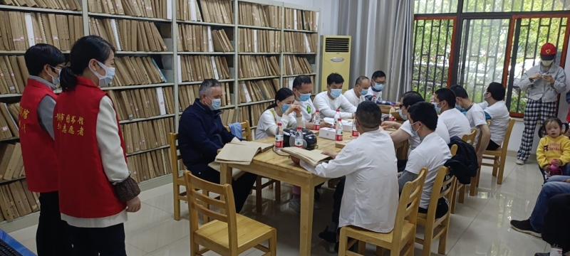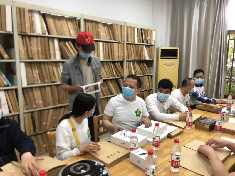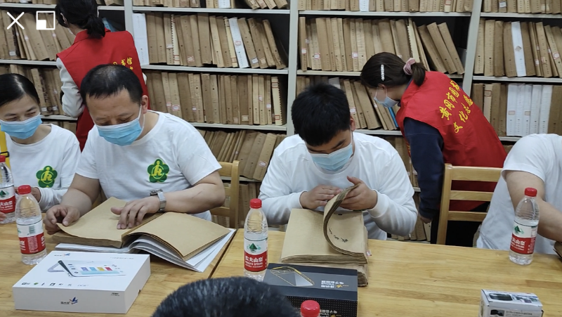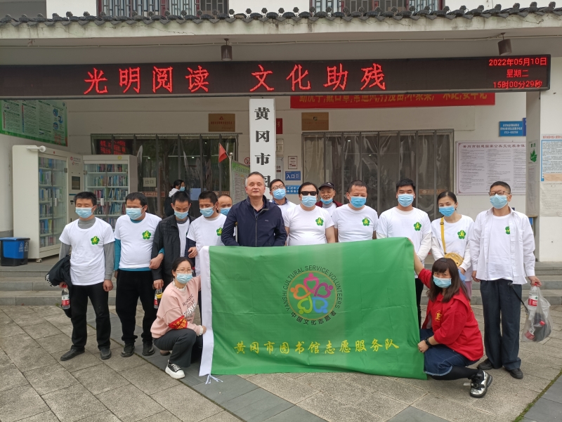 黄冈市图书馆志愿者为视障读者挑选、发放盲文阅读材料。