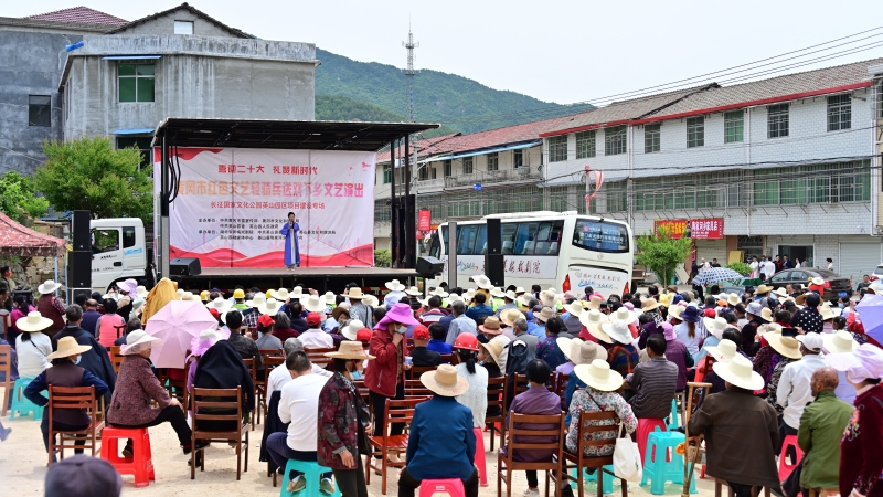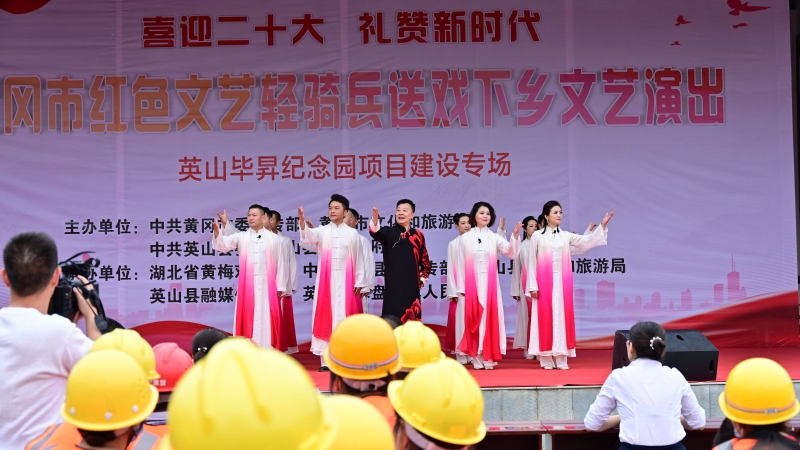 为深入学习贯彻党的十九届六中全会和省委十一届十次全会、市六次党代会精神,助力英山县长征国家文化公园和毕昇纪念园项目建设建设,丰富企业职工和基层群众精神文化生活,打造“红色文艺轻骑兵”文化志愿服务品牌,市委宣传部、市文旅局、湖北省黄梅剧院和英山县委宣传部等部门共同举办“红色文艺轻骑兵”送戏下乡惠民演出活动。