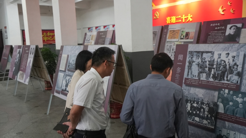 上午,浠水县宣传部长张明波、负责文教卫副县长徐敏、文化和旅游局书记王峰在参观《闻一多生平事迹展》,他们一边参观一边讨论闻一多的爱国情怀,这次展览让我县领导再次重温闻一多的红烛精神。