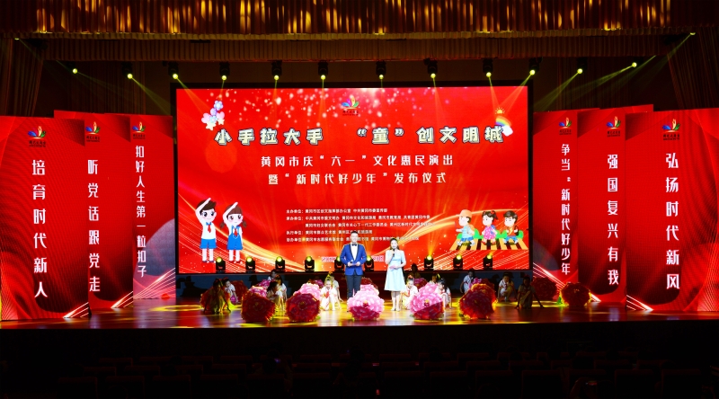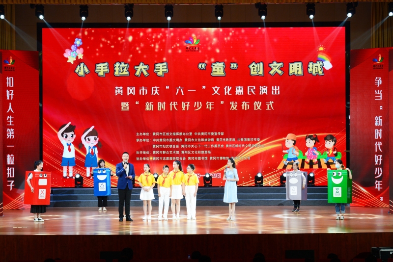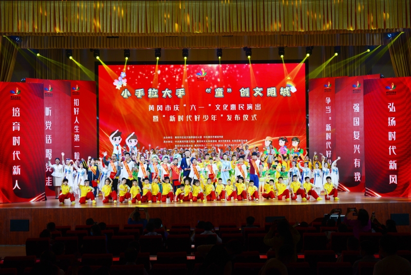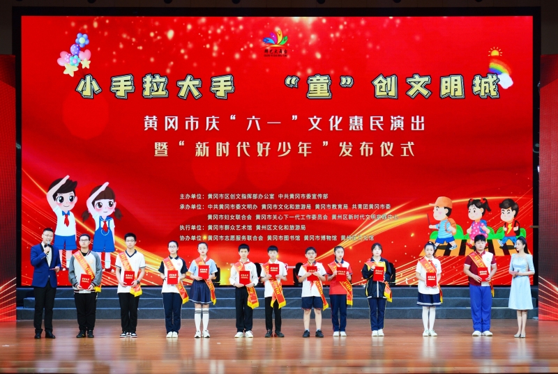为持续深入开展“扣好人生第一粒扣子”主题教育实践活动,大力选树我市“新时代好少年”,学习宣传未成年人身边的先进典型,5月28日晚,“小手拉大手 ‘童’创文明城”黄冈市庆“六一”文化惠民演出暨“新时代好少年”发布仪式在黄州举行。市委常委、市委宣传部部长李初敏,市委文明办、市文旅局、市教育局、团市委、市妇联、市关工委、区新时代文明实践中心等部门领导出席观看并上台颁奖。截止发稿,线上线下观看人数近10万人。