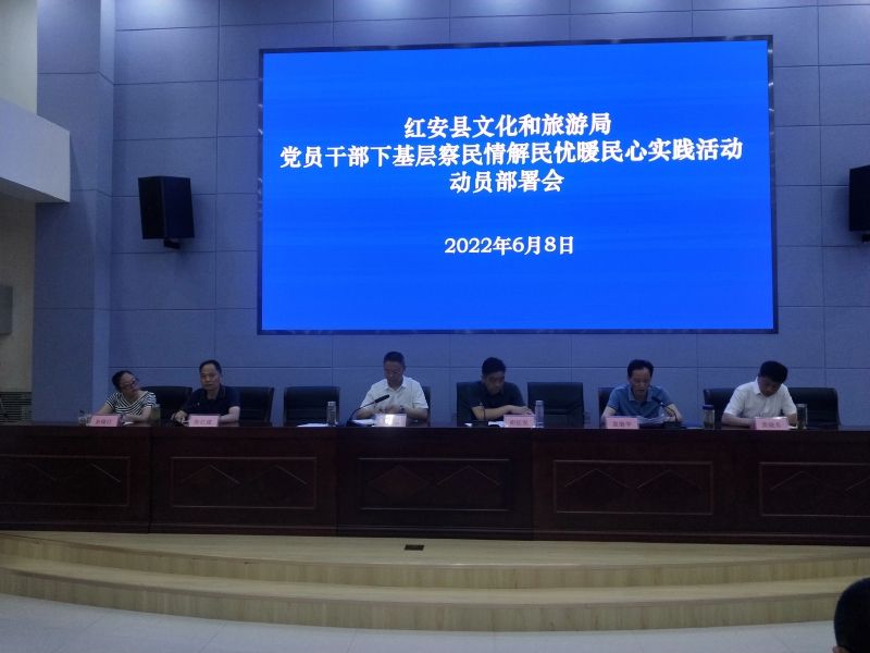局党组书记、局长罗军表示,党员干部要深入基层一线了解实情、直面问题、化解矛盾、服务群众,坚持以文旅事业高质量发展为主线,聚焦文旅企业及文旅事业发展工作中存在的“痛点”“难点”“堵点”,扎实解决和推进一批民生实事工作,落实好文旅系统“八大行动”(即:市场主体纾困解难行动、公共文化服务质量提升行动、文化惠民进万家行动、文旅助推乡村振兴行动、文旅市场整治行动、安全生产及信访维稳行动、文物保护利用行动、非遗传承保护创新行动),为加快建设大别山红色中心城市贡献文旅力量,展现文旅新作为,迎接党的二十大和省第十二次党代会的胜利召开。