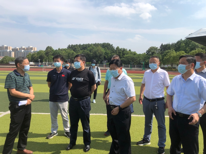 骆启义一行察看红安思源实验学校田径场地使用、体育器材配备情况,对学校开展体育课的项目及措施、校园足球的开展、田径训练、以及用于体育活动的资金来源一一进行询问,学校校长何裕贵一一进行详细汇报。当了解到该校是“湖北省老少边远地区足球示范学校”、“ 红安县田径项目传统学校”,为省市输送了多名优秀运动员时,骆启义一行对思源实验学校在体育工作中取得的优异成绩给予肯定。