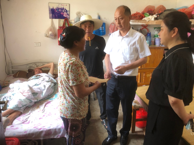王建学一行首先来到返贫风险户郁六林家,向郁六林的妻子详细了解郁六林致残原因,询问家庭经济来源、生产生活情况和存在的困难,送上慰问金。王建学鼓励郁六林的妻子照顾好自己的丈夫,乐观面对生活,叮嘱随行人员加大对郁六林家庭的扶持力度,帮助解决生活困难,消除返贫风险。