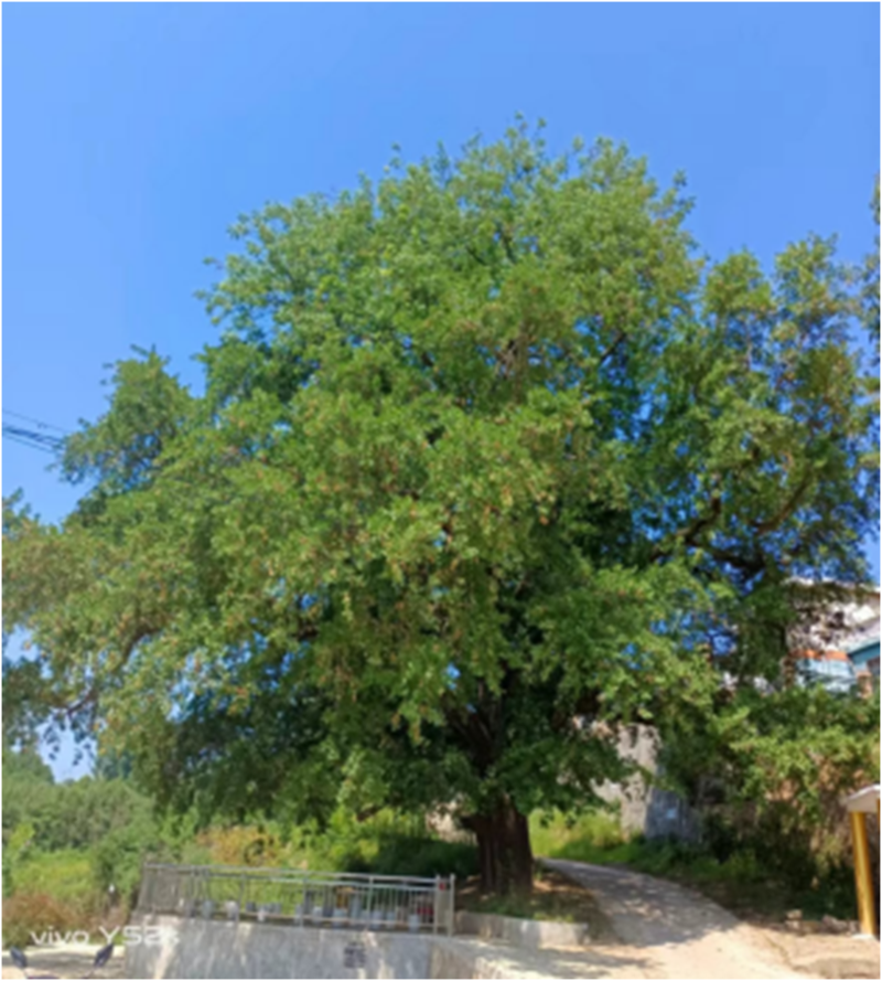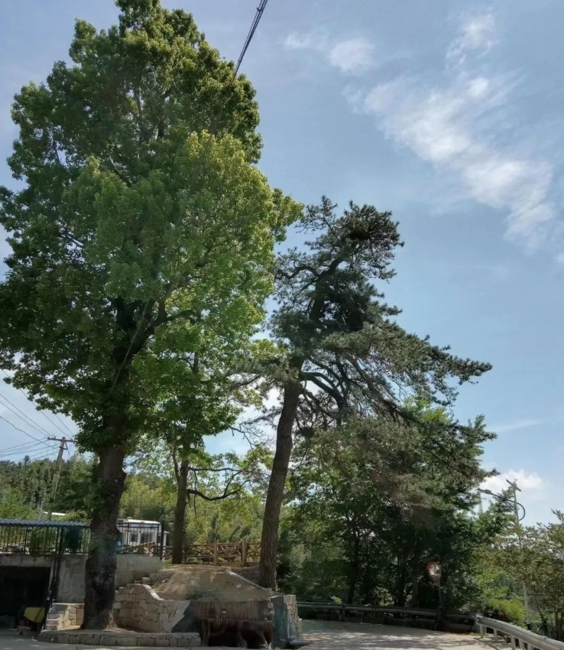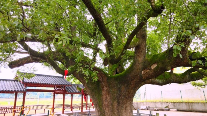 该树树围4米,冠幅直径15米,虽屡遭大自然的侵袭,历经百年沧桑,仍以其旺盛的生命力茁壮成长着,实为罕见的珍贵活文物。