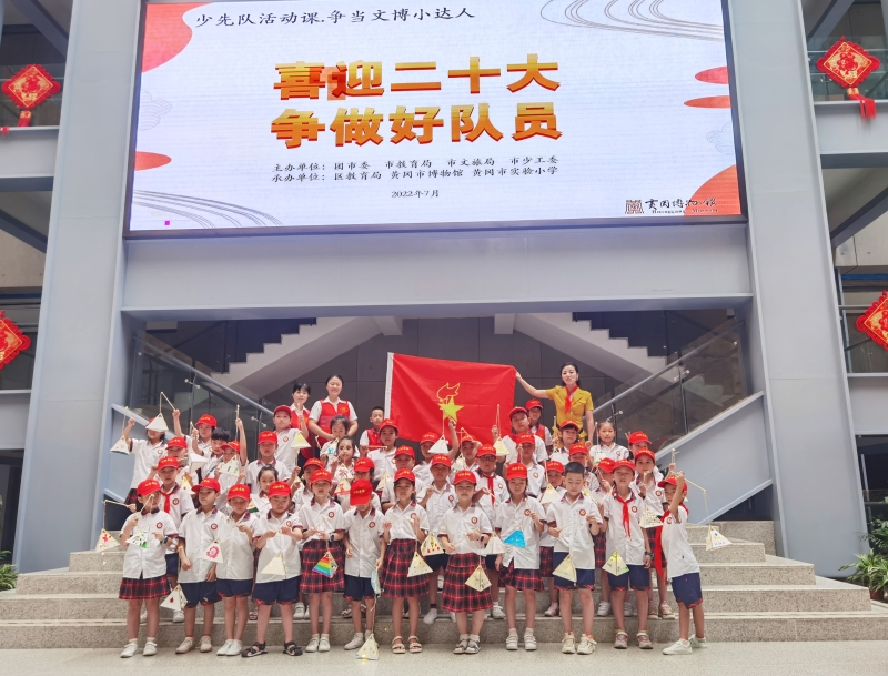 7月23日上午,市实验小学一年级近五十名少年儿童和少先队员走进校外实践基地黄冈市博物馆,开展“喜迎二十大 争做好队员”校外活动课。此次系列活动由团市委、市教育局、市文旅局、市少工委联合主办,区教育局、市博物馆、市实验小学共同承办,旨在充分发挥少先队校外实践基地组织教育作用和实践育人优势,激发少先队员的小主人翁意识和参与能力。