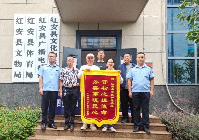 “太方便了,我今天跑一趟县城,就把开歌厅的所有证件全办下来了!原以为歌厅审批资料多,门槛高,没想到现在竟这样容易。”红安县经济开发区悦尚歌厅负责人夏细宝言语中掩饰不住内心的喜悦。2022年8月29日上午,他特地又来到县城,把一面印有“守初心担使命 办实事暖人心”的锦旗送到县文化和旅游局。“我今年六十岁了,对电脑一窍不通,连网上注册都不会,多亏他们加班加点替我全程办理,真是太感谢文旅局的工作人员了。”夏细宝逢人便夸。