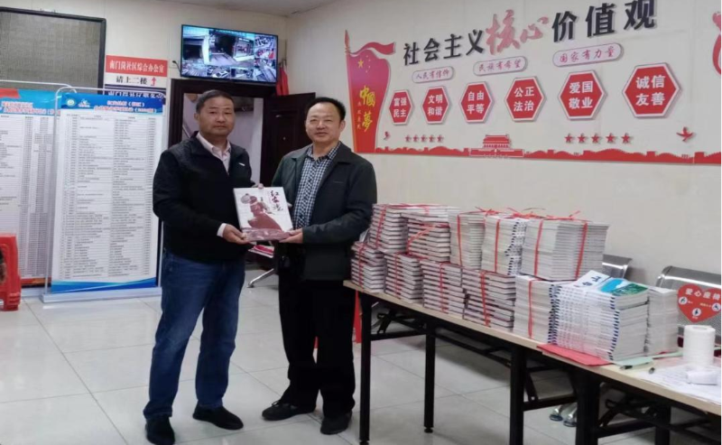南门岗社区书记陈德生对红安县图书馆的捐赠表示感谢,他说,红安县图书馆多年来一直坚持送图书进社区,与社区联合开展文化活动,极大的丰富了小区人民的文化生活。并且经常性组织党员干部积极下沉社区,参与铜锣联防志愿活动、疫情防控和入户调查等工作,对社区的文化繁荣和安全稳定工作起到了积极的推动作用。
