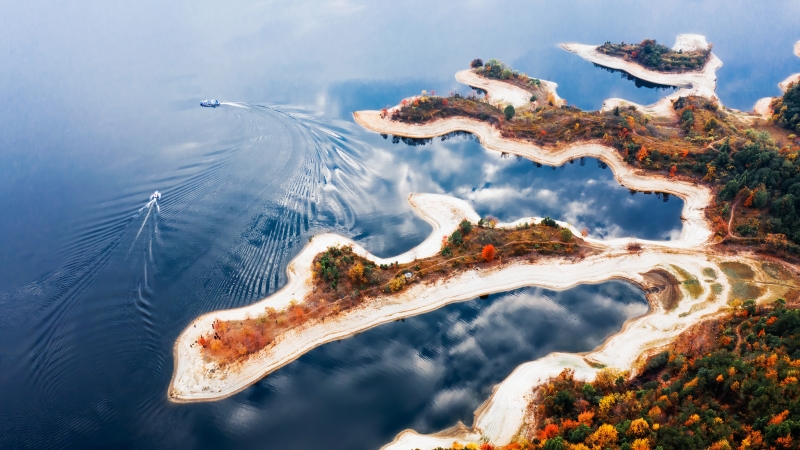 白莲河生态保护和绿色发展示范区是湖北省“两山”理论先行先试实验区,水面有68平方公里,水岸线有463公里。碧波荡漾的水面上,星罗棋布的点缀着大大小小几百个岛屿,像画师手中描绘的千里江山图,将鄂东这块孕育着无限宝藏的神奇画面呈现出来。
