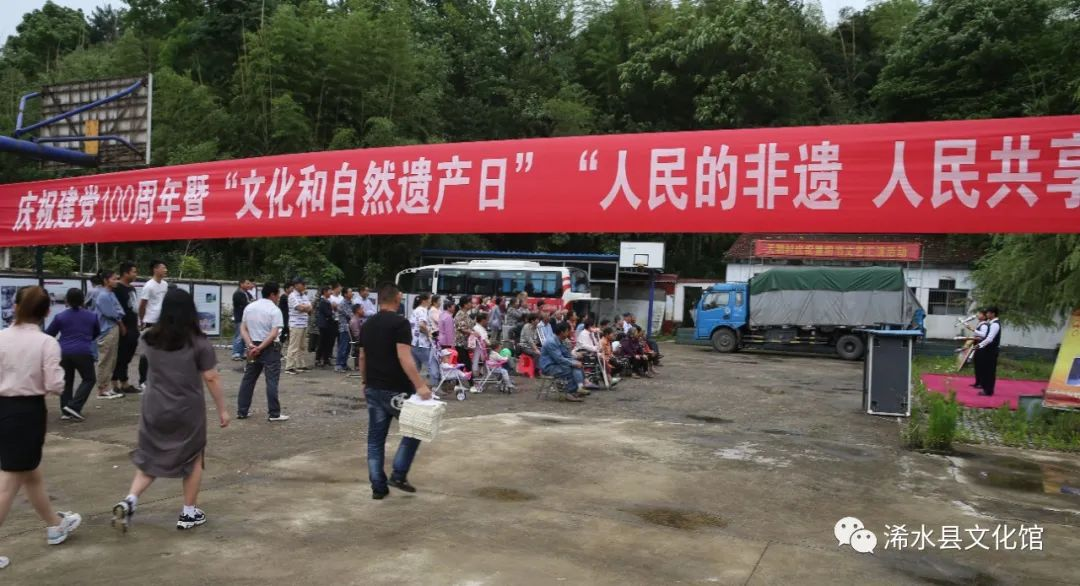 非物质文化遗产是民族文化的精髓,是民族智慧的结晶,也是民族精神的象征,它传承了一个民族的历史文化和价值观念。在庆祝中国共产党建党100周年和即将到来的“文化和自然遗产日”之际,为贯彻落实非遗司、省、市、县非遗中心工作安排,进一步传承和弘扬优秀民族文化,丰富群众文化生活,提升老百姓文化品味,积极引导群众,更好地了解非物质文化遗产,增强民族自信,营造非遗保护传承的良好乡村氛围,2021年6月3日上午,由浠水县文化和旅游局、浠水县清泉镇人民政府主办,由浠水县文化馆(浠水县非遗中心)、浠水县杂技团、清泉镇综合文体中心承办,浠水红色文艺轻骑兵、文化志愿队助力的2021年“文化和自然遗产日”宣传展示展演活动在清泉镇天鹅村举行,全村男女老少共同参加了此次活动,让更多群众知晓“非遗”、热爱“非遗”、学习传承“非遗”文化。
