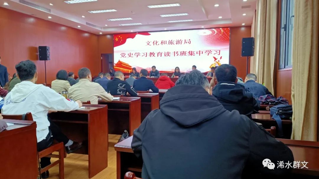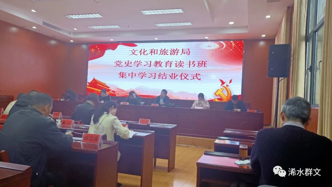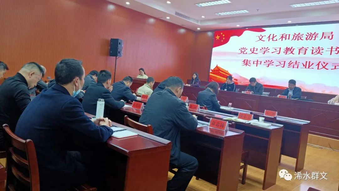 4月8日下午在人民会堂三楼会议室文旅局机关全体干部职工、二级单位班子成员、全体党员参加了第一期党史学习结业式。