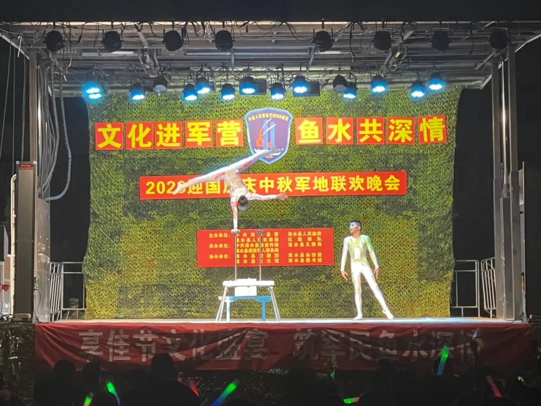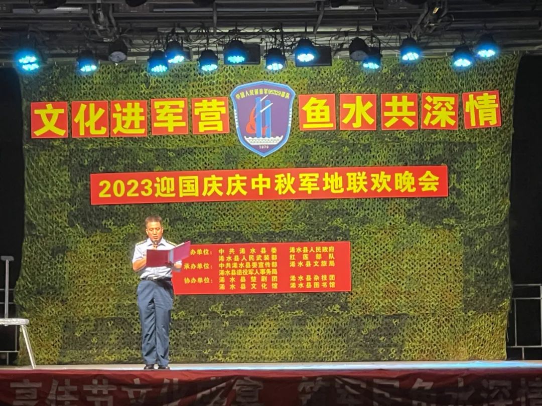 9月15日晚,为迎接中秋、国庆双节的到来,由中共浠水县委、浠水县人民政府、浠水县人民武装部、某部队主办,中共浠水县委宣传部、浠水县文旅局、浠水县退役军人事务局承办,浠水县楚剧团、杂技团、文化馆、图书馆协办的主题为"文化进军营 鱼水共深情"的“2023喜迎国庆 中秋军民联欢会”演出活动,在驻扎在浠水某部队顺利举行,现场全体官兵观看了表演。