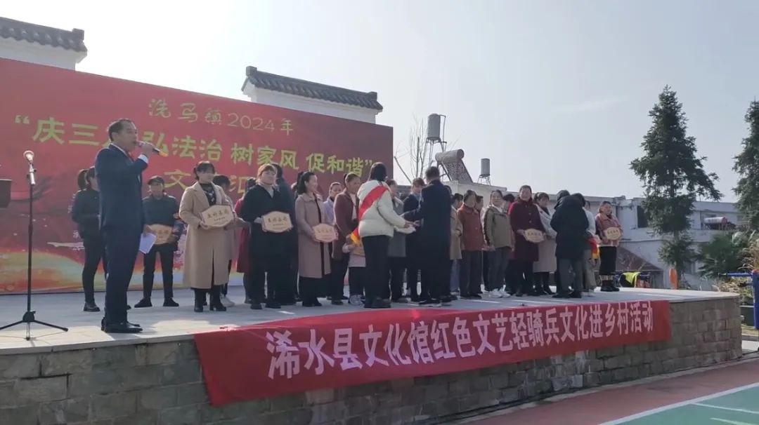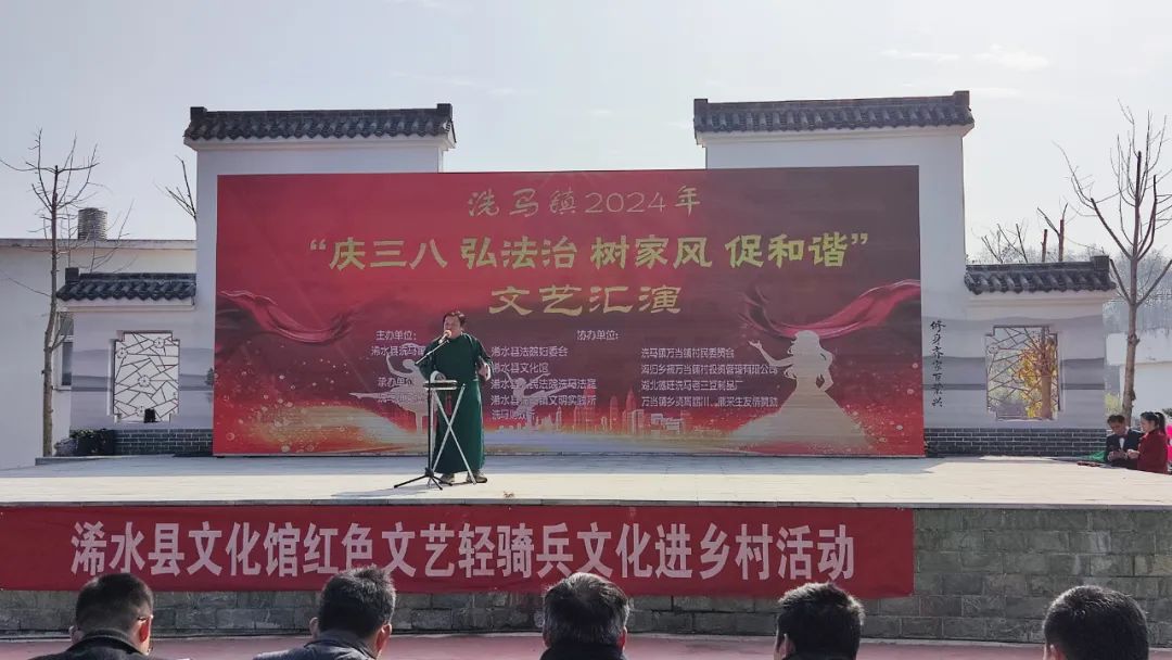 阳春三月,是充满活力与生机的季节。3月8日,为了迎接第114个"三八"国际妇女节的到来,丰富妇女居民精神文化生活,洗马镇携手浠水县文化馆红色文艺轻骑兵队伍在洗马镇万当铺村百姓大舞台推出了"庆三八 弘法治 树家风 促和谐 "庆三八妇女节文艺演出,为本镇的女同胞们送去浓浓的关爱和温暖。