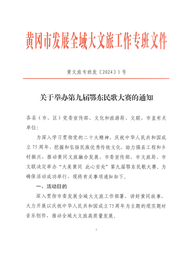 为深入学习贯彻党的二十大精神,庆祝中华人民共和国成立75周年,挖掘和弘扬民族优秀传统文化,助力强县工程和乡村振兴,推动黄冈文旅融合发展,市委宣传部、市文旅局、市文联决定举办“大美黄冈此心安处”第九届鄂东民歌大赛。欢迎大家踊跃报名参赛!