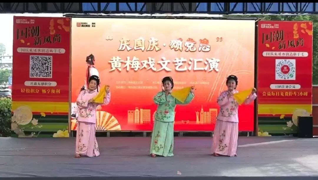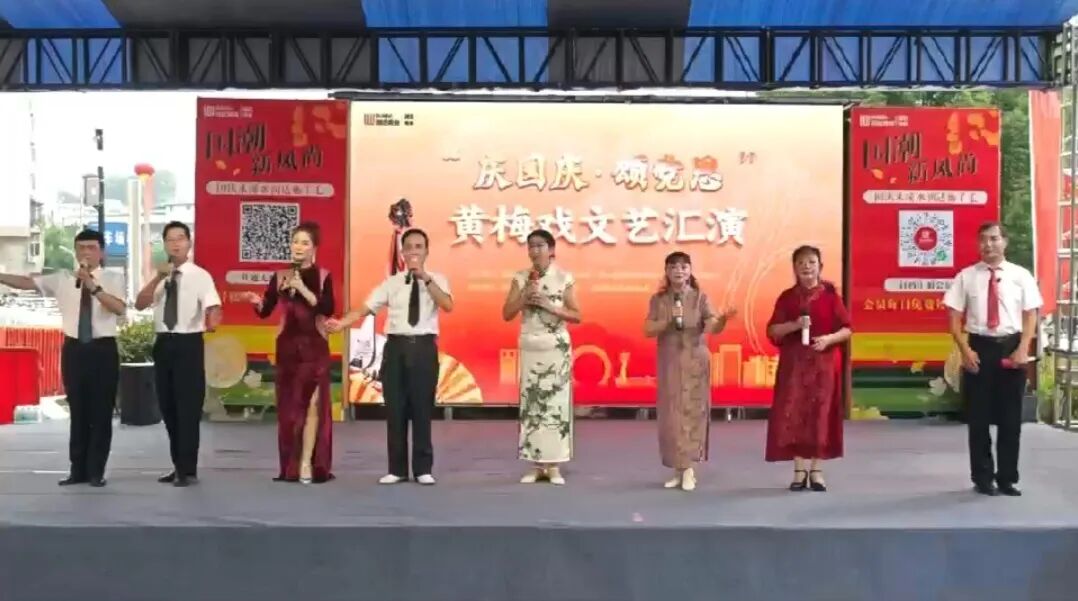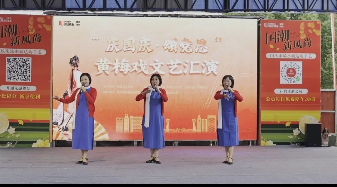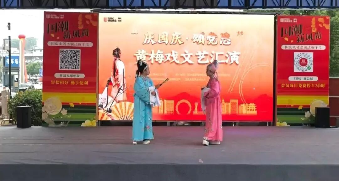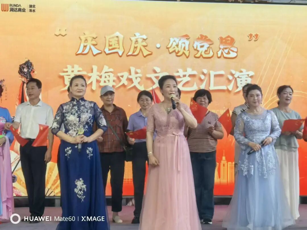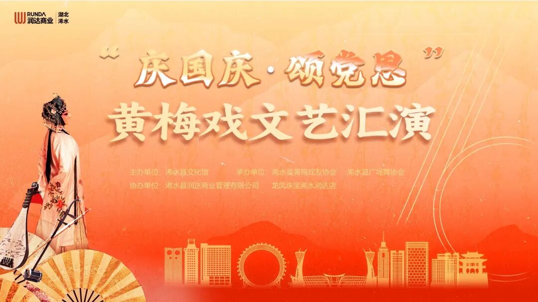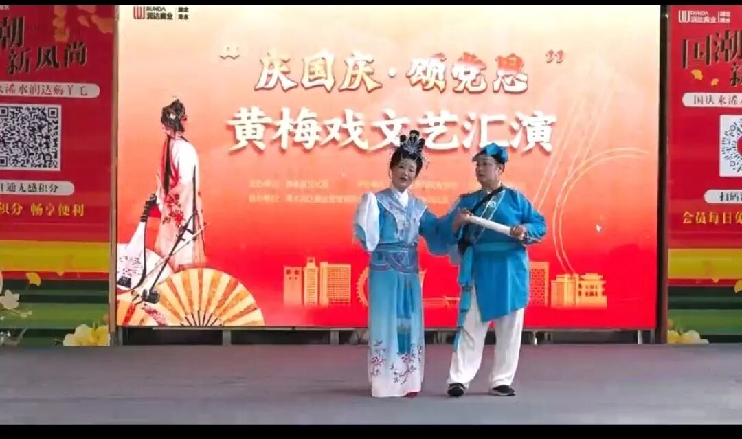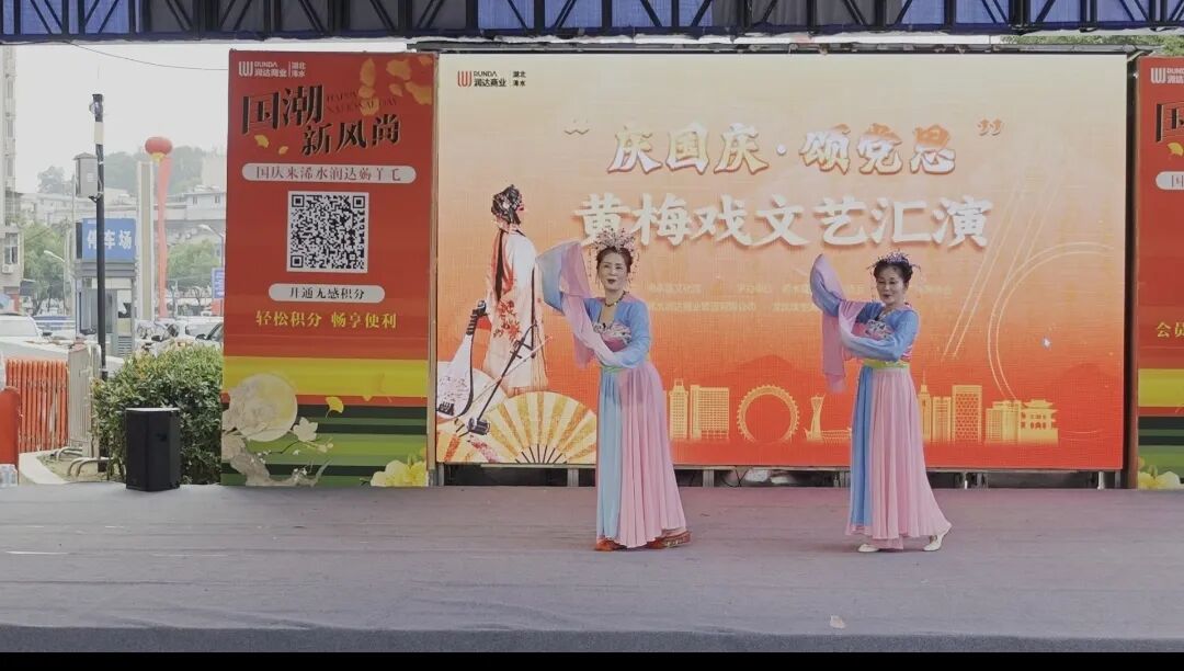 为庆祝中华人民共和国成立76周年,丰富群众文化生活,10月2日,由浠水县文化馆主办,浠水县黄梅戏友协会、浠水县广场舞协会承办,浠水县润达商业管理有限公司、龙凤珠宝浠水润达店协办的“庆国庆·颂党恩”黄梅戏文艺汇演在浠水润达国际购物中心举行。