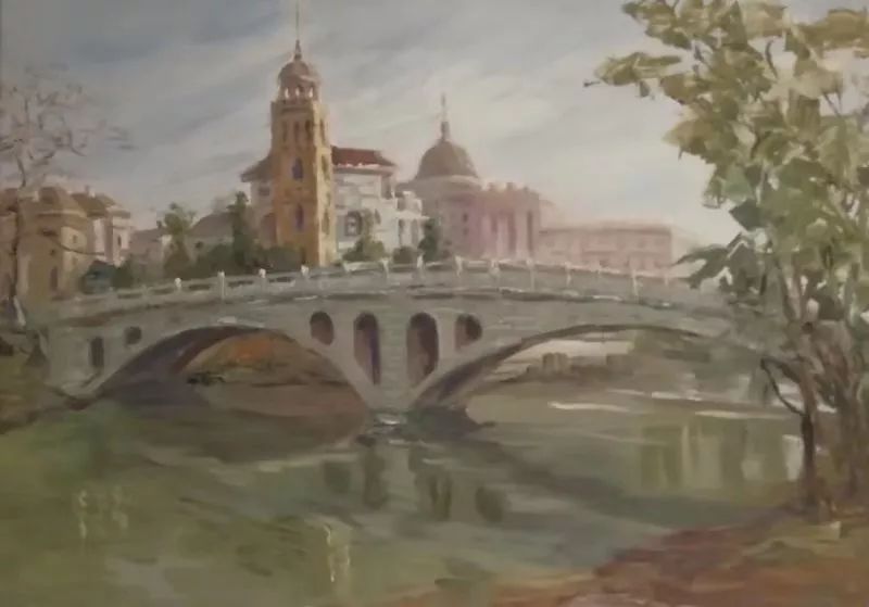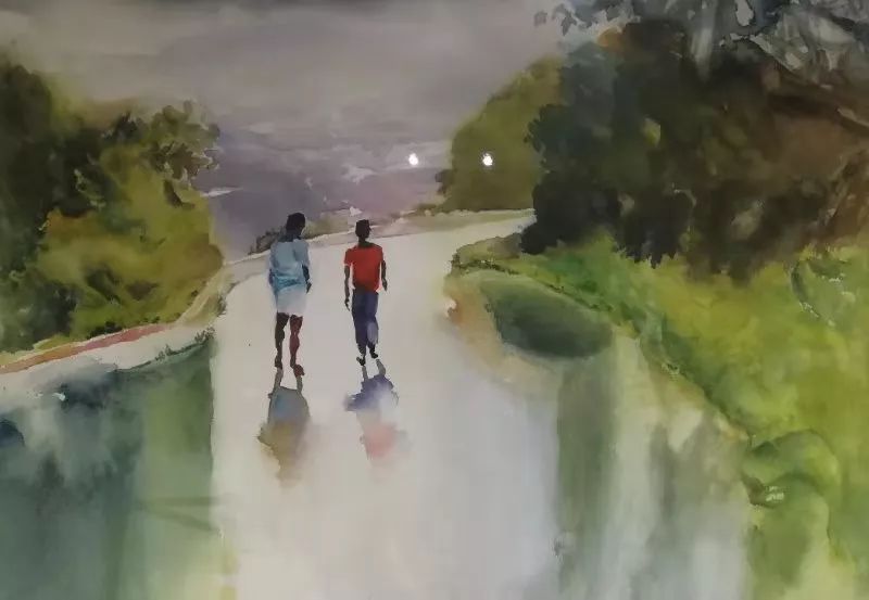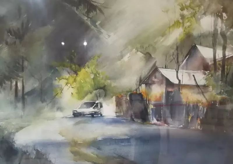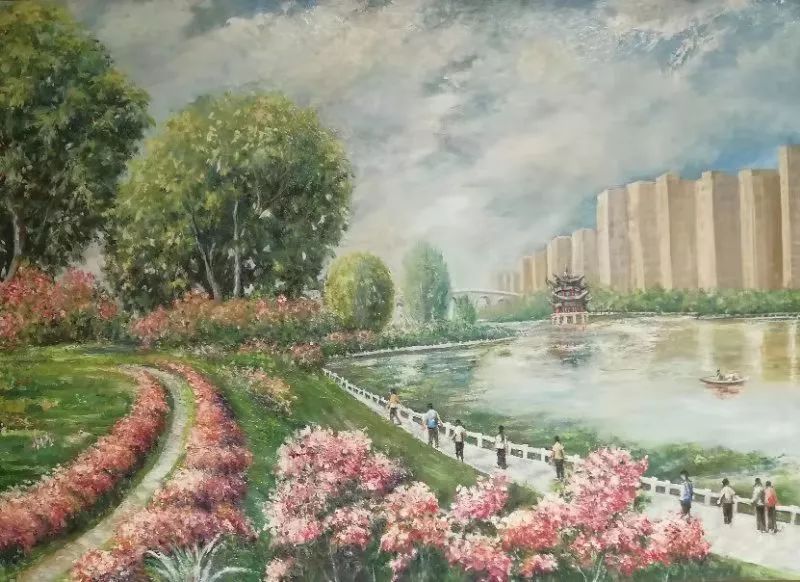 水粉《遗爱湖夜景一角》孙友山 黄州区
