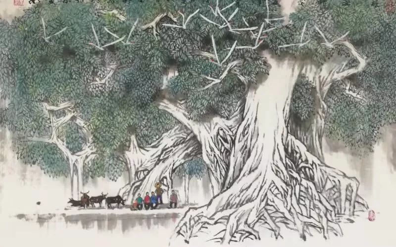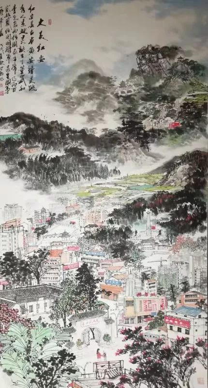国画《绿水青山就是金山银山》杜抗美 黄州区