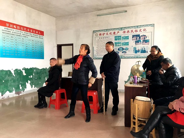 罗田东腔戏是罗田县独具特色的地方戏曲剧种,也是该县列入省级非物质文化遗产保护项目。近年来,罗田县文化馆非遗保护中心坚持“在生活中弘扬,在实践中振兴”的指导思想,克服东腔戏民间艺人年龄老化、后继乏人、缺乏演出市场等重重困难,一直致力于东腔戏的挖掘、保护、传承和发展工作。一是进一步完善罗田东腔戏传承谱系,对罗田东腔戏省级传承人许计生老人经典唱腔唱段进行声像补录,储存数字资源量300多G,收集东腔戏文字手抄本10多万字,正在进行整理装订成册;二是加大罗田东腔戏进校园力度,使罗田东腔戏进校园形成常态化。白庙河中小学已将东腔戏纳入常规音乐课程,常年聘请市级传承人盛翠平为专业指导教师,学唱东腔戏在白庙河流域蔚然成风。三是在白庙河东腔戏传承示范基地成功举办罗田东腔戏培训研讨会暨“以师带徒”仪式,老、中、青、少四代传承人和东腔戏爱好者50多人参加了培训,并就罗田东腔戏的保护、传承与发展进行了探讨。四是大力扶持民间东腔剧团,复排东腔大戏,将东腔戏列入2018年“送戏下乡”地方戏之一,使东腔戏走入百姓生活,让更多的人了解罗田东腔戏,参与到保护、传承东腔戏中来。