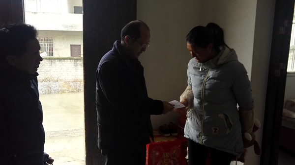 元月24日上午,市文广局党组书记、局长王建学带领分管扶贫工作的总工程师徐迎等一行,赴武穴市梅川镇塔水桥村看望文广局驻村扶贫队员 ,了解扶贫工作进展情况,亲自上门走访慰问吕承斌等5位贫困户,详细询问贫困户的要求,并现场解释了国家对贫困户在就医、小孩入学等方面的优惠政策,为贫困户送去了春节慰问物资。