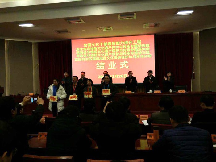 学院党委书记、副院长段周武为大家颁发培训结业证书。此次培训对象针对性强,规格高,课程安排合理,且对实际工作具有很强的指导意义。让学员们对非遗保护工作有了一个更全面的认识和理解。