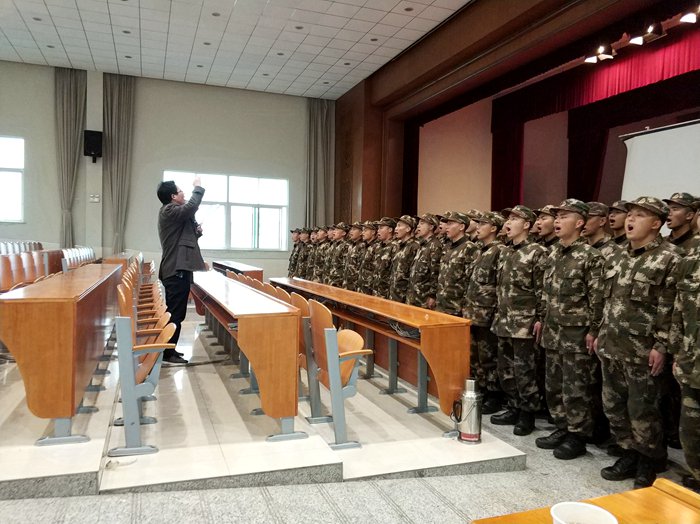 为全面推进我市文化建设军民融合试点工作,活跃部队官兵节日文化生活。2月26日下午和27日上午,市群艺馆负责人侯啸澜亲赴武警部队,为部队官兵排练大合唱节目《做习主席的好战士》、《保卫黄河》,参加于正月十五在遗爱湖东坡广场举行的2018闹元宵文化惠民演出活动。