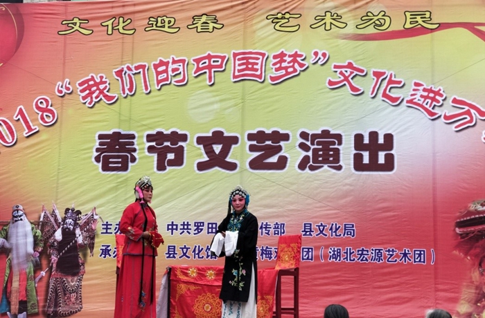 为贯彻落实党的十九大精神,深入学习贯彻习总书记给内蒙古自治区苏尼特右旗乌兰牧骑队员们的回信的重要指示精神,弘扬中华民族优秀传统文化,满足人民群众日益增长的精神文化需求,活跃全县人民元旦春节期间文化生活,着力营造我县新春佳节的节日氛围。春节前夕,罗田县委宣传部、县文化局下发了《“我们的中国梦•文化进万家” 2018年元旦春节文化活动实施方案》。县文化局召集县直各文化单位负责人、各乡镇文化站长,召开了专题会议。对全县春节文化活动作了详细的部署安排,并成立了“县文化馆红色文艺演出小分队”和“县黄梅戏剧团红色文艺演出小分队”深入基层组织文化惠民活动,丰富广大群众的节日文化生活。以“文化迎春、艺术为民”、“我们的中国梦•文化进万家”为主题的春节群众文化活动在全县展开。