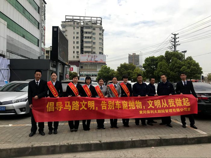 黄冈保利大剧院管理有限公司总经理王志方与公司全体员工带头倡导文明健康的生活方式,带头维护公共秩序,用文明出行的行动实践教育人、感染人。积极倡导文明出行,拒绝车窗抛物,共同维护有序、安全、畅通的交通环境。