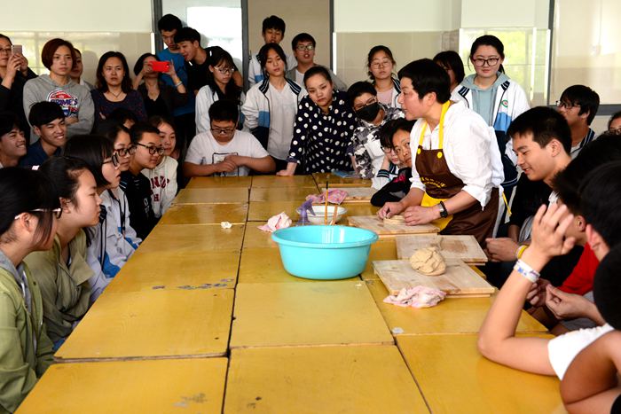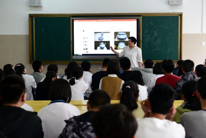 杨金卯老师还给学生们现场演示如何手工制作陶艺,并细致地讲授了制作过程中的注意细节并鼓励学生们大胆创意、拓展思维,师生们一起互动完成了两件手工制作陶艺作品,课堂气氛轻松、活跃,学生们表现出对“陶艺”这一中华优秀传统艺术的极大兴趣。
