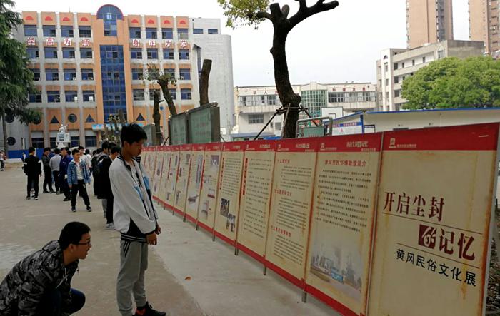 上午,“黄冈民俗文化展”移动展览在校园内展出,在校两千余名学生纷纷前来观看。学生们被具有黄冈特色的民俗文化、民俗风情和令人惊赞的民间艺术所吸引,边看边交流着心得,表示对“民俗文化”很感兴趣,同时表达了对“先辈创造的神奇艺术”的匠心精神的敬仰。