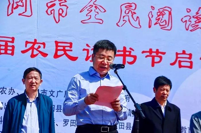 “书香门第 耕读人家”农民读书节是罗田县文化(新闻出版)局精心打造的一块文化品牌。今天的开幕式拉开了我县第四届农民读书节的序幕,县文化(新闻出版)局将继续大力开展全民阅读“七进”和书香机关、书香村组创建等活动,使阅读活动更加深入基层、深入群众。让广大干部群众从读书中获得新知,在读书中享受快乐,推动全社会形成爱读书、多读书、读好书的浓厚氛围,让全民读书、崇尚文明成为罗田新风尚,为建设文明、美丽新罗田贡献自己的智慧和力量!