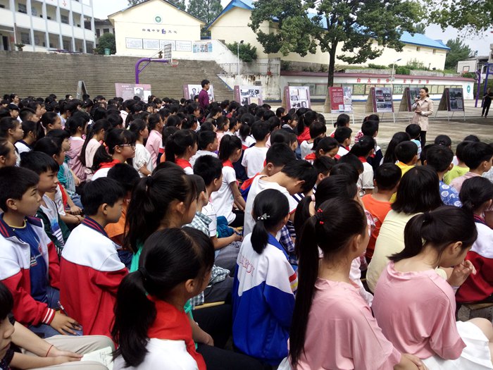 5月23日上午,浠水县闻一多纪念馆工作人员到白莲镇白莲中学,将《闻一多先生生平事迹展》流动展牌安置在校园操场上,和学校师生共同举办了一场“文化遗产的传播与传承”主题教育活动。