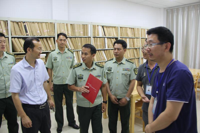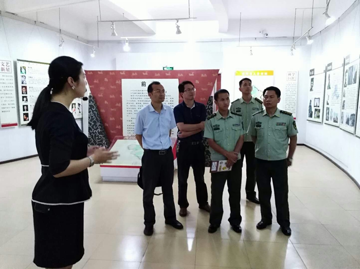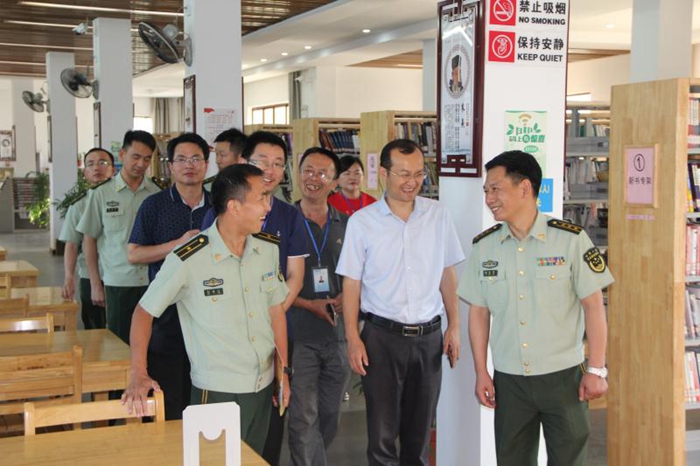 6月6日,为贯彻落实新发展理念,坚持富国和强军相统一,形成军民融合深度发展格局,促进军民融合文化建设,武警总部彭继江干事在武警黄冈支队政委黎本军,市文广局党组成员、副局长王宝超陪同下先后参观了市图书馆、市博物馆、市群艺馆等军民融合文化活动场馆。
