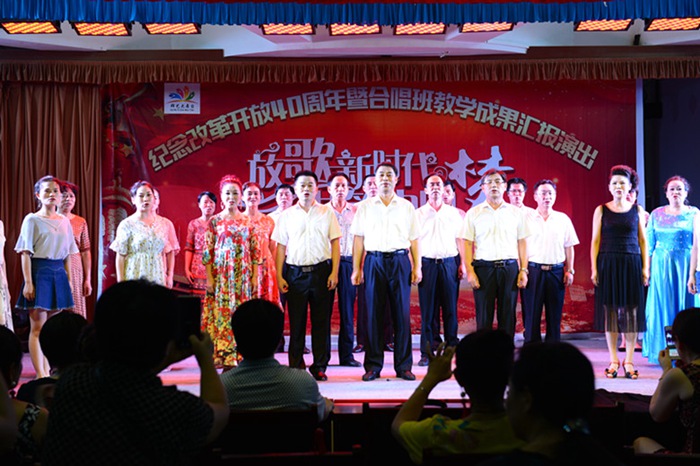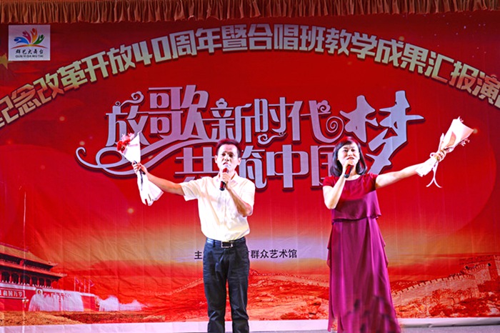 纪念改革开放40周年,扎实推进我市公共文化服务示范区创建工作,提高人民群众文化生活参与度和满意度,2018年3月28日,市群艺馆组织开展合唱班培训。历经3个多月,合唱班已圆满结束,7月19日晚,市群艺馆在四楼多功能厅组织开展“放歌新时代 共筑中国梦”纪念改革开放40周年暨合唱班教学成果汇报演出,来自合唱班的学员们参加了此次活动。