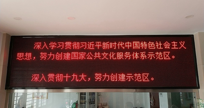 馆领导在职工大会等会议上向职工多次强调创建公共文化服务体系示范区相关文件精神和信息。同时,充分利用图书馆宣传阵地来宣传公共文化服务体系示范区创建相关内容,如在图书馆微信公众号上刊发多篇创建公共文化服务体系示范区新闻。在馆内电子显示屏滚动播放创建公共文化服务体系示范区宣传标语,在馆内醒目位置放置《黄冈市创建国家公共文化服务体系示范区知识问答》宣传展板,努力通过多种宣传方式提高职工和广大读者对公共文化服务体系示范区知晓率。
