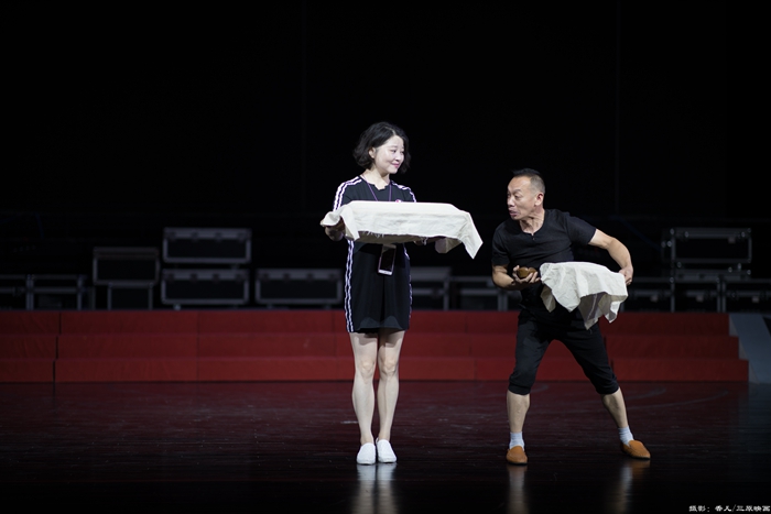 “东坡酒、东坡肉……”仅第五场戏《躬耕》乡亲们慰劳苏东坡片断中的报菜名就重练了5遍。这场戏中群众演员有数十名之众,每人的走位的节奏、唱词与音乐衔接都严丝合缝了,大家才进行下一场景排练。据悉,五年间《东坡》这部戏演出了100余场,但每次演出前,演员们都会认真排练,力争将最精湛的表演,完美的艺术效果呈现给群众。