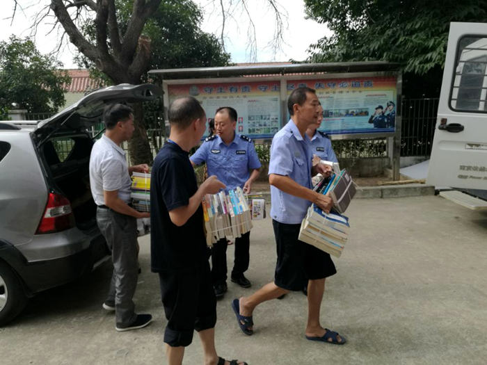 8月16日上午,红安县图书馆工作人员将精心挑选的200册图书送到红安县火连畈拘留所管教干警的手中。捐赠的图书内容丰富,涉及法律法规、人文历史、励志文学等积极向上的书籍。该拘留所是县图书馆建立的馆外图书流通点之一,工作人员始终坚持每年两次提供无偿更换图书服务,深受这些特殊读者的欢迎和喜爱。