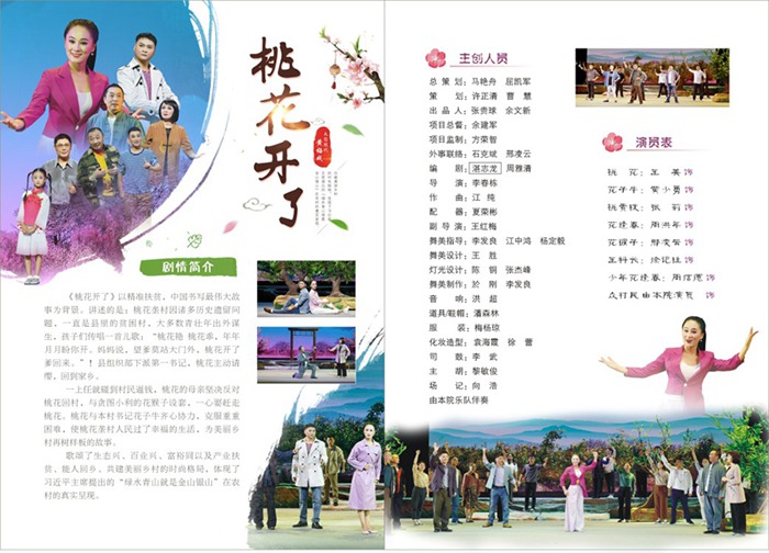 为深入学习宣传贯彻党的十九大和习近平总书记关于文艺工作系列重要讲话精神,备战湖北省第三届艺术节,黄梅县黄梅戏剧院筹划近两年,创作了大型现代题材黄梅戏《桃花开了》。该剧由国家一级编剧、原黄梅县戏剧创作室主任湛志龙和戏剧创作室国家二级编剧周雅清共同执笔,江苏省淮安市国家一级导演李春栋执导,山东省梆子戏剧院王文君担任服装设计,湖北广播电视台江中宏担任舞美指导。