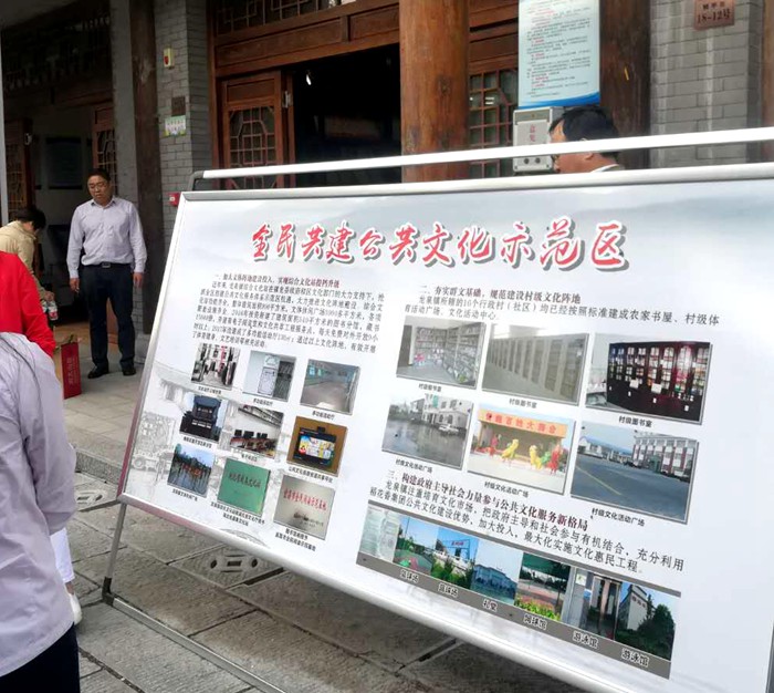 16日至17日,考察组参观考察宜昌市城市规划馆、群众艺术馆、夷陵区小溪塔街道官庄村文化服务中心、非物质文化遗产版画传习所、龙泉镇图书馆、文化馆分馆、中国三峡柑橘博物馆,宜昌市政府副秘书长叶爱华、市文广局局长李进新、市财政局副局长卢发泉、文广局副局长肖发喜,介绍创建做法和成效。