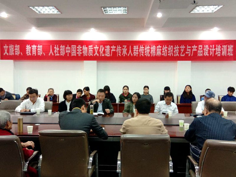 近日,湖北省非遗保护研究中心“荆楚纺织非遗馆”在武汉纺织大学举办开馆仪式。汉绣、“红安绣活”、“红安大布传统纺织技艺”、阳新布贴等作为首批非遗项目正式入驻。湖北省文化厅二级巡视员赵令珍、文化和旅游部恭王府中华传统技艺研究与保护中心主任孙冬宁、武汉纺织大学校长彭育园、省文化厅非遗处副处长黄树清、省非遗中心常务副主任、省群艺馆副馆长张晓慧等领导参加开馆仪式并参观展览。场馆面积3000多平方米,展示着20项荆楚地区纺织非遗项目的前世今生。