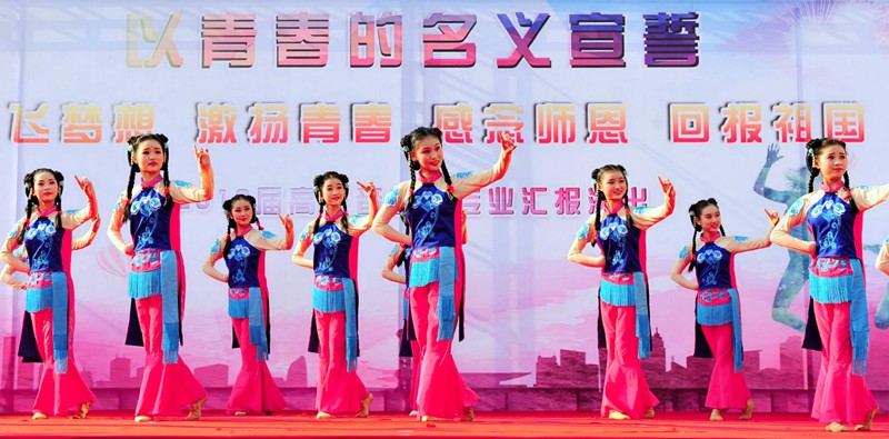 在以“以青春的名义宣誓”为主题的汇报演出中,音乐舞蹈专业的同学们表演的舞蹈技巧组合、民族舞串烧、器乐合奏、小组唱、独唱等丰富多彩的节目,赢得了现场师生和家长们的阵阵喝彩,同学们以对艺术的执着和热爱演绎着一曲优美激荡的青春之歌。