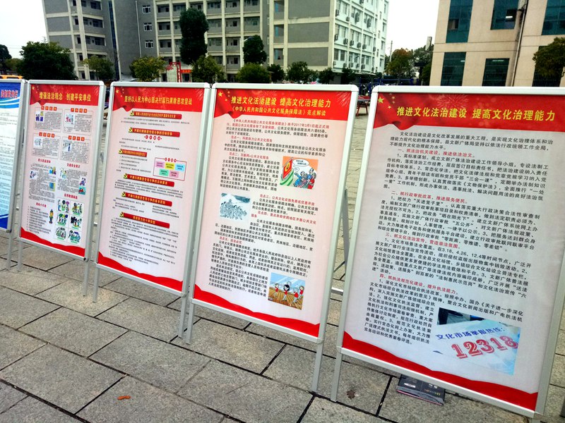 12月4日,为深入开展文化市场法律法规宣传教育,增强全县文化市场经营者的法律意识,团风县文新广体局积级参与由团风县政法委、县普法办组织的12.4平安法治宣传活动,在团风县理工中专内设立了展牌、标语,并组织了文化法治汇报演出,通过广场宣传、现场咨询、发放宣传材料等方式,对社会各界和广大市民进行了广泛宣传,收到较好效果。据统计,此次活动,参加的市民达2500多人,接受咨询500多人次,现场发放宣传资料5000多份,受到社会各界和广大市民的好评。