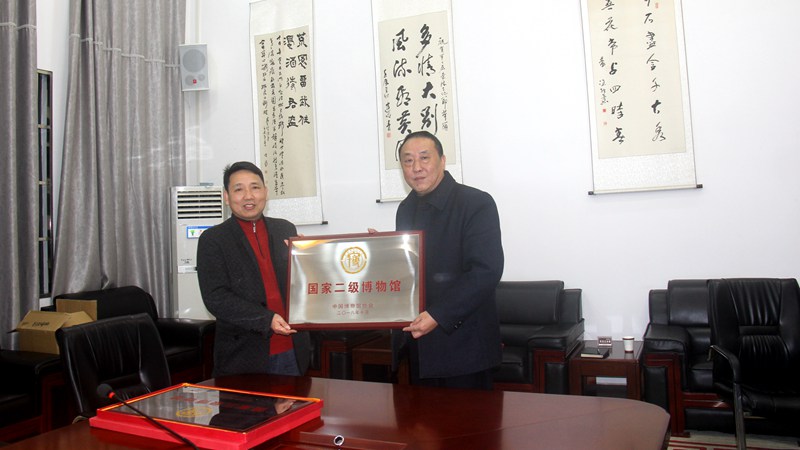 今年9月18日,中国博物馆协会正式发文公布《第三批国家二、三级博物馆名单》,黄冈市博物馆成功晋升为”国家二级博物馆”。12月5日,湖北省博物馆和湖北省博物馆协会相关领导莅临黄冈市博物馆,代表国家文物局、中国博物馆协会,将“国家二级博物馆”牌匾授予该馆。