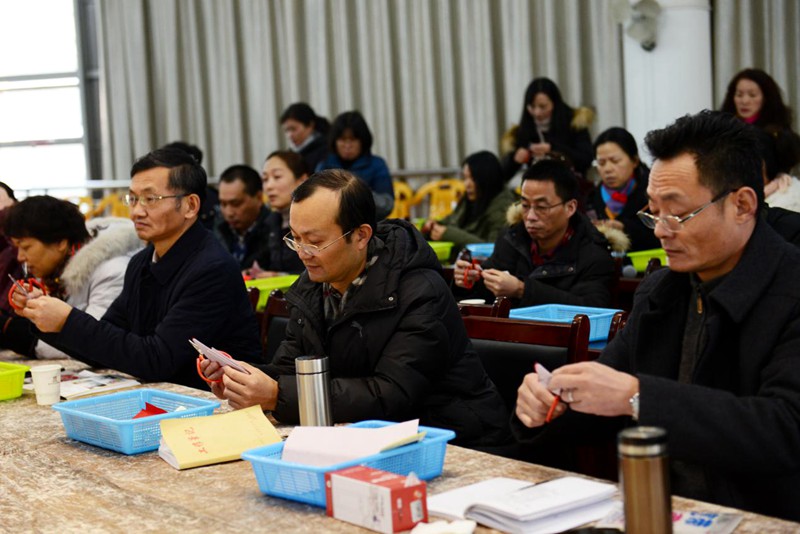 此次道德讲堂活动共分为“唱歌曲、宣誓词、忆党史、看短片、讲故事、送祝福”6个环节。活动通过全体干部职工合唱革命歌曲《一条大河波浪宽》、庄严宣誓入党誓词、红色歌曲猜猜唱中回忆党史,激励全体干部职工不忘初心牢记使命奋发有为。通过观看微视频《不忘初心,牢记使命·文化惠民,大爱同行 》,汇报市群艺馆2018年组织举办各类文化惠民大爱同行活动情况,活动覆盖不同群体,线上线下参与人次达300多万人次,较好体现群艺馆社会职能。通过讲述红色革命故事《一件60岁高龄的婴儿服》故事,勉励大家谨记勤俭节约优秀革命传统,让有限资源服务更多群众。在送祝福环节中,非物质文化遗产传承人、卢氏第三代剪纸传人卢华老师向大家赠送剪纸作品“福”字,祝福大家“猪年吉祥”,同时在现场传授授剪纸技艺《荷花》和《雪花》,大家纷纷拿起剪刀和红纸,跟着卢老师一起,兴奋剪出了自己满意作品。