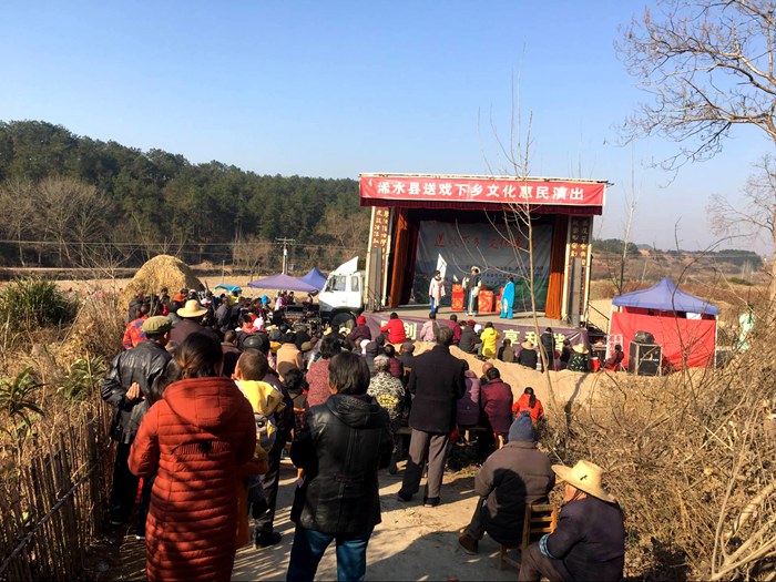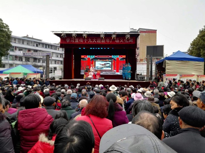 为了让城乡老百姓共享文化成果,满足群众的精神文化生活需求和群众的不同兴趣的喜好。县委县政府2018年财政支出230万元购买送戏下乡文化服务。由楚剧团、杂技团两个专业文艺团队在全县13个乡镇进行免费巡回演出。截止2018年12月15日县楚剧团、杂技团共送戏下乡演出396场,观众80多万人次。